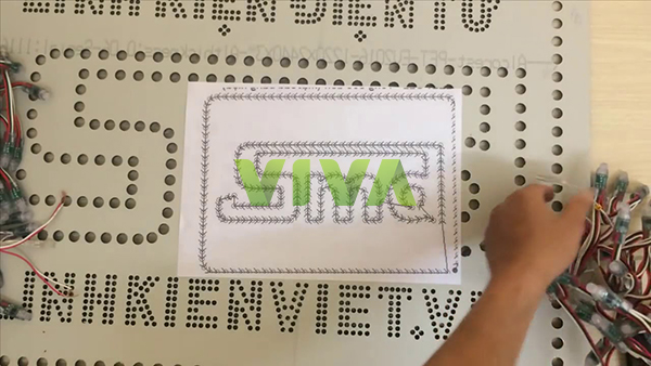 - Đối với những chữ đã dán giấy lên miếng ốp nhôm, sử dụng led ruồi và dán chúng lên đằng sau.